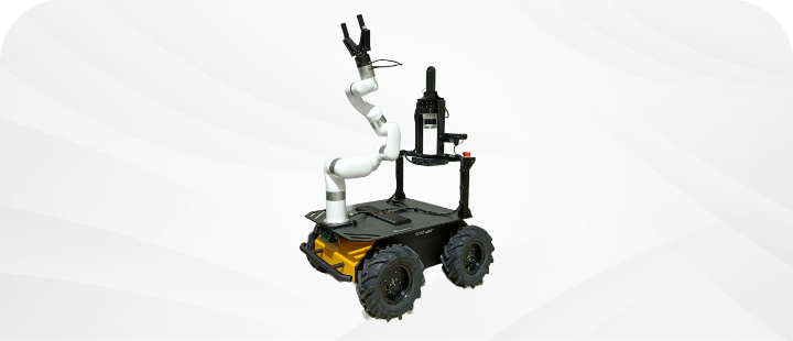 We design, customize and integrate mobile robotic platforms. This includes indoor and outdoor UGVs, which we combine with robotic arms to create fully functional mobile manipulation systems